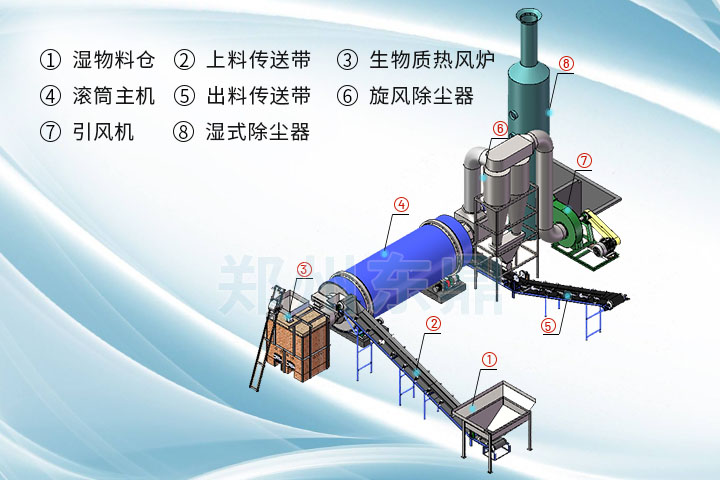 2、干燥主機(jī)自我保溫?zé)嵝矢哌_(dá)70%以上,提高熱效率50%以上,噸干料耗柴量控制在100公斤以下;