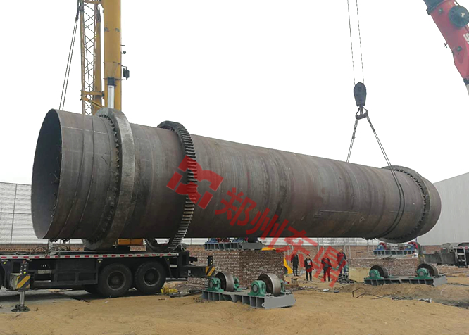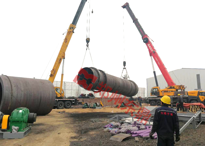 山西懷仁隆安煤泥烘干機(jī)項(xiàng)目進(jìn)行主滾筒吊裝作業(yè)